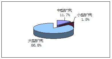 截至2003年底我国玻璃硅质原料矿产地共有228处,其中,大型矿床61个,查明资源储量407960万吨,占全国查明资源储量的86.8%,中型矿床89个,查明资源储量54990万吨,占全国查明资源储量的11.7%,小型矿床78个,查明资源储量7050万吨,占全国查明资源储量的1.5%。