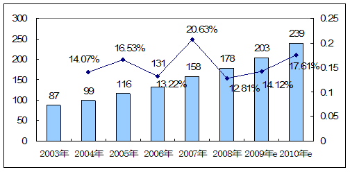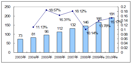 | 2008年 | 5.9 | 5.42% | 24.3 | 10.07% |