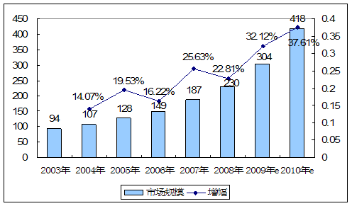 2009年我国对铁路运行图进行了调整,并新增直通旅客列车89对,客运列车达1551对,客运能力将提高10.6%以上。新增加的客车中,大量增加动车组列车,动车组开行范围由现在的17省市区增加到18个,覆盖东部、中部以及部分西部地区。我国铁路运力的提升及动车组列车的增添为我国火车铸件 行业 提供了巨大的市场空间。从统计数据中可以看出,2007、2008年我国火车铸件的市场规模增长率分别达到了25.63%、22.81%。