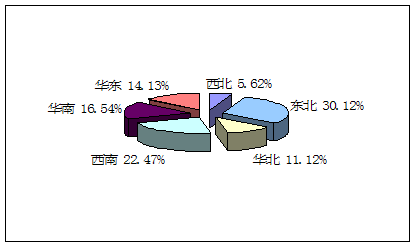 我国火车铸件消费区域主要以东北、西南、华南及华东地区为主,占到全国总消费量的83.26%。其中东北为国内最大的火车铸件消费区域,其消费量占比为30.12%。