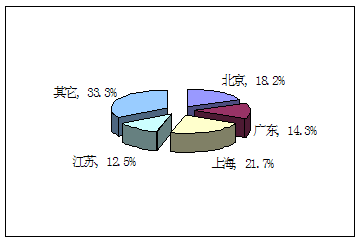 轻型纸目前在我国的消费主要集中在发达地区和城市,从消费分布中可以看出,北京、上海目前是我国轻型纸的主要消费城市,其消费量占到总消费量越40%的份额。其它地区的消费量相对比较少,但是在这两大城市的带动下,未来轻型纸的消费量将快速增长。