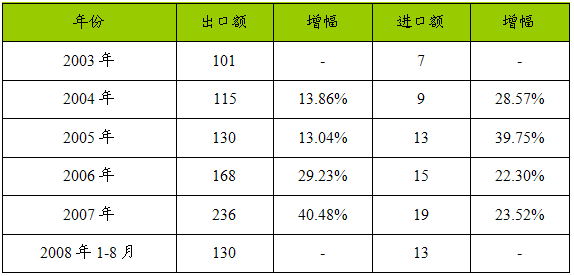 2003-2008年8月我国汽车冲压件产品进出口 分析