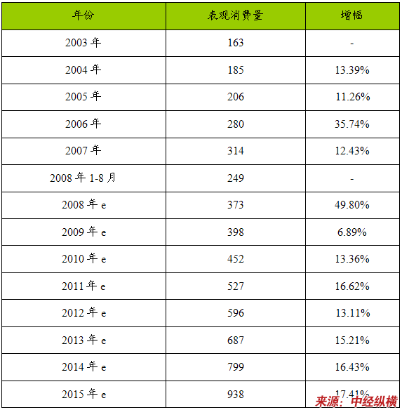 2003—2015年汽车冲压件产品消费 分析 及预测表