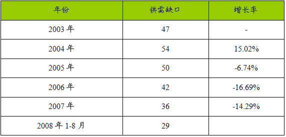 2003年我国汽车冲压件供需缺口达到47万吨,2004年供需缺口比上一年增长15.02%,从2004-2007年我国供需缺口进一步减小,还有部分产品出口到海外,但是产品精度高,质量好的冲压件产品还需从国外进口。