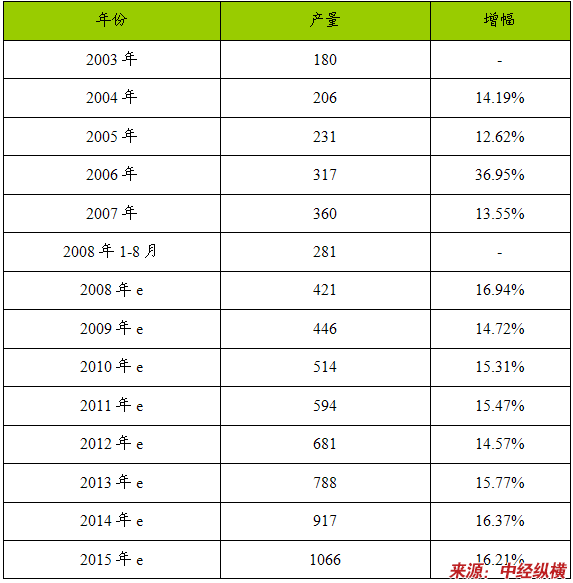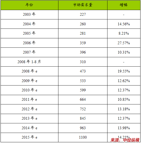 2003—2015年汽车冲压件产品需求 分析 及预测表