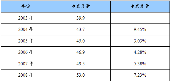 2003-2008年我国大输液市场容量统计