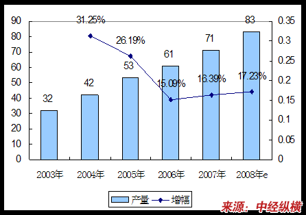2003-2008年我国大输液产量统计