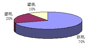 2007年我国大输液产量达到71亿瓶(袋)。而据嘉华特(北京)咨询服务有限公司对30家大型输液企业的调查统计,这些企业生产的产品中大约70%为玻瓶产品,20%为塑瓶产品,10%为软袋产品。