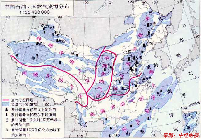 “十五”期间,我国发现苏里格、大牛地、普光、子洲-清涧、庆深等5个探明地质储量大于1000亿立方米的气田,发现塔河、蓬莱19-3、西峰、志靖-安塞、渤中25-1S、大情字井、陆梁、曹妃甸11-1等8个探明地质储量大于1亿吨的油田。