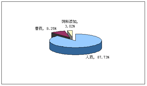 2009年我国硫酸新霉素销售量为220万十亿单位,其中用于人药、兽药、饲料添加的分别为193、20.4、6.6万十亿单位。