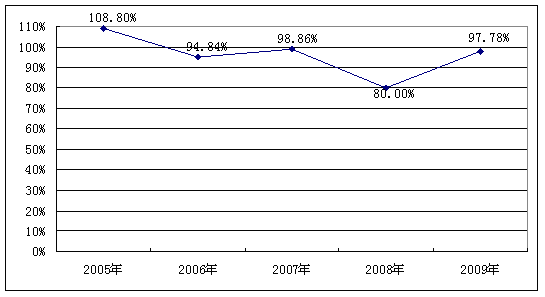 2003-2009年我国硫酸新霉素(原料药)产销率情况