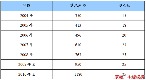 2004-2010年我国鸦胆子油乳注射液需求规模及预测增长图