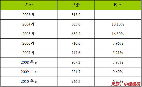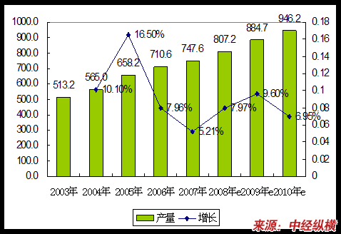 2003-2010年盐酸产品产量 分析 及预测表