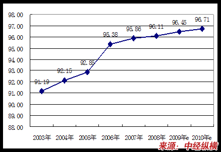 近6年来,不锈钢医疗器械产销率呈增长态势,预计2010年产销率达到96.71%。