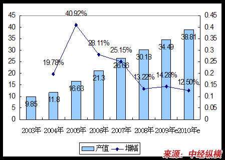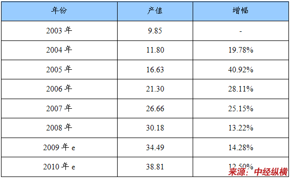2003-2010年我国不锈钢医疗器械产品产值 分析 及预测表
