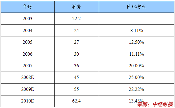 2003—2010年汽车引擎清洁剂消费状况 分析 及预测表