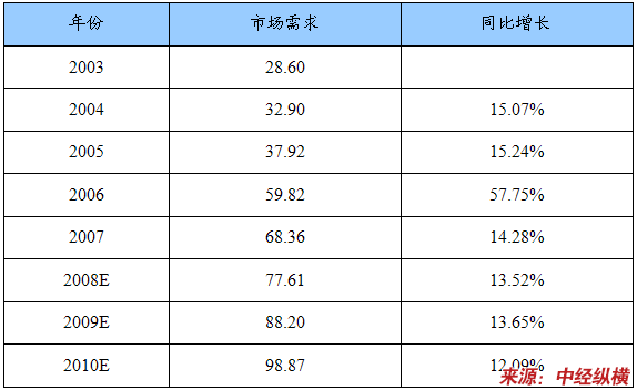 2003—2010年汽车引擎清洁剂市场需求 分析 及预测表