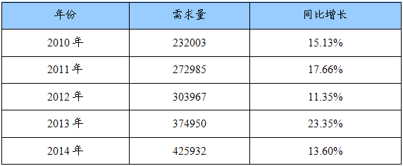 二、2010-2014年低烟无卤聚烯烃电缆料产品需求增长预测