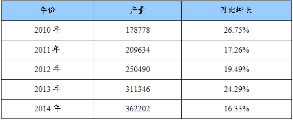二、2010-2014年低烟无卤聚烯烃电缆料产品产量增长预测