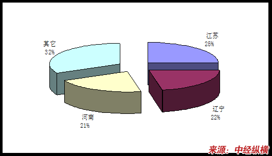 我国干粉砂浆线主要分布在江苏省、辽宁省、河南省,三个省市占全国产量的67.64%,区域集中度高。