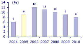随着新的多晶硅产能投产,硅料制约将轻微减小,非晶硅技术的市场份额将会出现下降。到2010年,预计非晶硅技术的产量大约是500Gw(8%的市场份额)。历史上,非晶硅技术得到了媒体和投资者的很大关注,但是事实证明成本很高,或者难以大规模生产。我们预期现在非晶硅技术的发展会遇到类似的挑战,但是我们仍然会继续 研究 这些技术,以判断是否还有在何时,非晶硅技术在成本和大规模生产上与晶硅相比变的有竞争力。