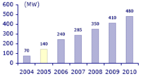 在接下来的数年,预期太阳能技术将向两个方向发展,第一,通过规模经济、在低成本地区制造,硅料的高效使用,更高的转换效率等方式继续不断革新,如Evergreen Solar和SunPower公司通过它们不断的技术创新将可能取得快速成长。第二,我们预期非晶硅技术将扩大产量和市场份额,估计非晶硅,CIS,CdTe和其它非硅技术的产量将从70MW(6%的市场份额)增长到140MW(9%的市场份额)和2006年的240MW(12%的市场份额)。