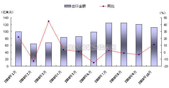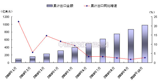 2008年1-10月我国服装及衣着附件出口统计图(2)