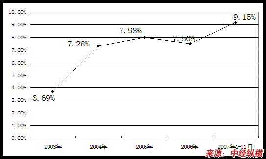 | 2007年1-11月 | 0.86 | 0.72 | 0.19 |