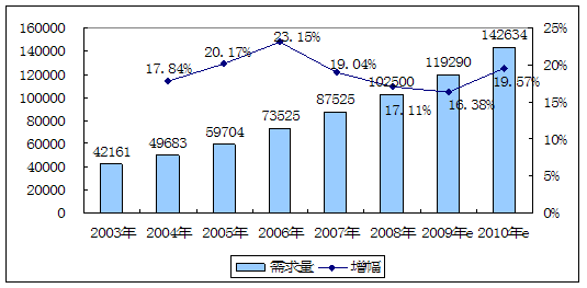 我国是世界纺织和服装生产大国,产品出口创汇量大。近几年 行业 产值都以15%以上的速度增长。随着我国纺织服装产品质量的提高,产品在国际市场上的份额逐渐增长。纺织和服装 行业 快速稳定的发展,使得国内乳胶丝产品近几年市场需求增长较快,2008年国内市场需求量已经超过10万吨。