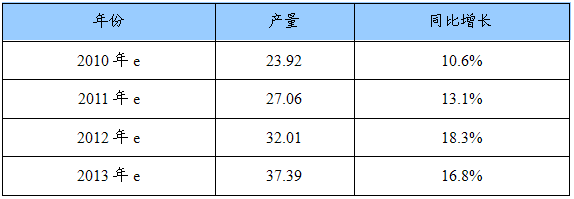 2010-2013年我国精炼镍产量预测表