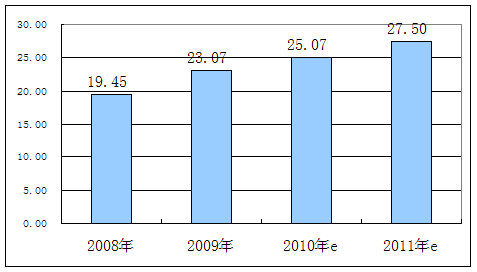 2008-2011年全球电脑婴儿培养箱需求量估算及预测图