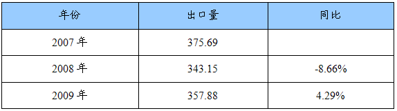 2007-2009年我国电子烟出口数据统计