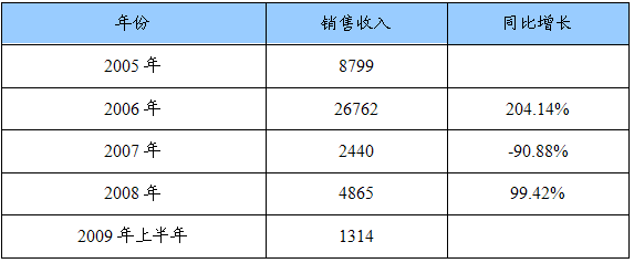2005-2009年国内如烟雾化电子烟销售收入及同比增长