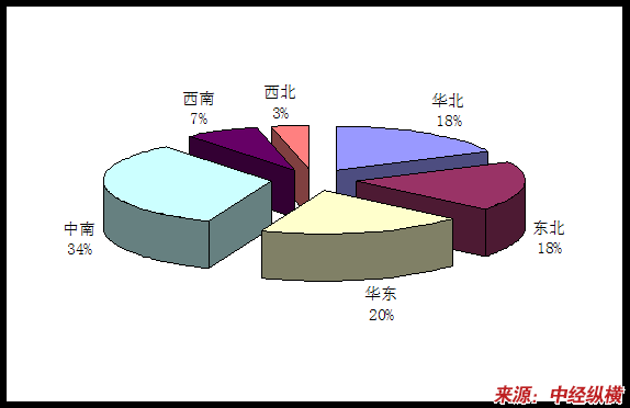 由图可见我国羽肠粉的需求主要集中于中南地区,中南地区羽肠粉需求占了我国羽肠粉需求的34%,其次是华东地区、东北地区和华北地区,分别占20%、18%、18%。因此可以说我国羽肠粉的需求分布比较分散,没有高度集中于某一地区。