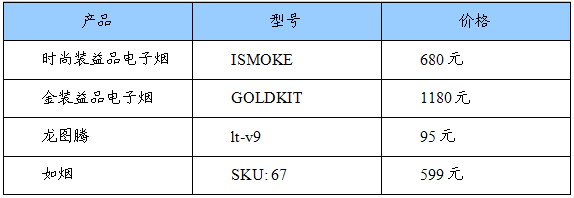我国主要电子烟产品零售价表