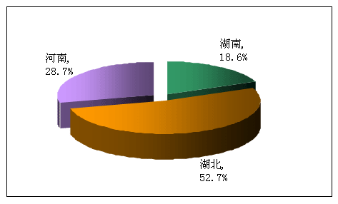 华中地区电子级别超纯氨气产量约占全国电子级别超纯氨气产量的12.9%。在华中地区中,湖北省电子级别超纯氨气产量在华中地区产量最多,达到52.7%,河南省与湖南省分别为28.7%以及18.6%。