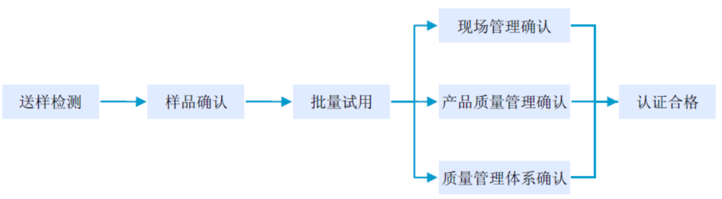 由于高压电触头用于电力产品的关键部件或用于关键工艺过程中,有缺陷的高压电触头产品往往给下游客户造成巨大的经济损失,因而高压电触头产品在被用户接受前均需要经过严格的测试和认证,产品定型后一般不作改变。高压电触头产品需要进行长期的可靠性等质量认证,时间从数月到一至二年不等,新进入者在短期内难以形成销售规模。通常较为完整的产品认证过程如下图所示: