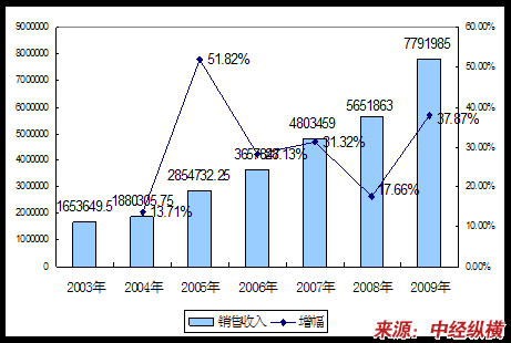 二、2003-2009年麻醉包产业销售收入发展情况 分析