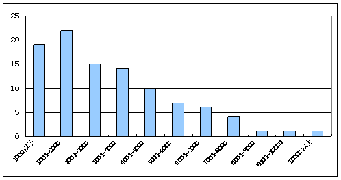 第一节 干粉砂浆线产品不同价格段产品数量分布