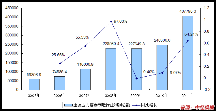 中国是压力容器生产的大国,生产的目的主要是满足国内的需求。生产厂家的数量和相应的装备能力均为世界领先,多年的建造实践和国家的强化管理,使我国的压力容器 行业 形成了装备齐全、人员配套、管理严格的生产格局,为我国的压力容器产品走向国际奠定了基础。我国经济的高速发展带动了压力容器和管道 行业 的快速发展,市场规模不断扩大。目前国家扩内需、保增长、调整振兴重大 产业政策 的实施,人们生活水平不断的提高,各领域对金属压力容器的需求无疑带来 行业 历史性的发展机遇。国家更是积极倡导和建设环境优美型、资源节约型的社会,一批本 行业 环保型的新产品、新材料、新设备不断涌现。