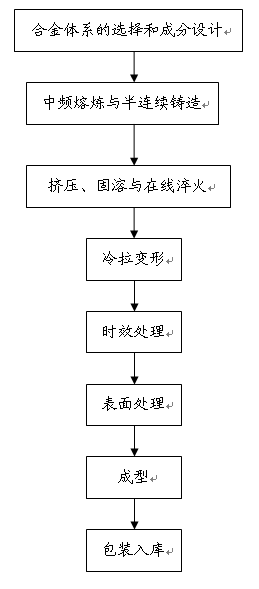 端环铜合金成份设计→炼、铸造→铸锭均匀化→锻造工艺→热处理工艺