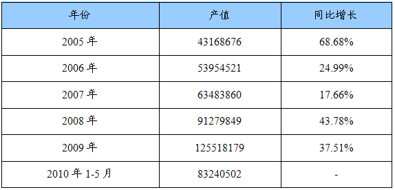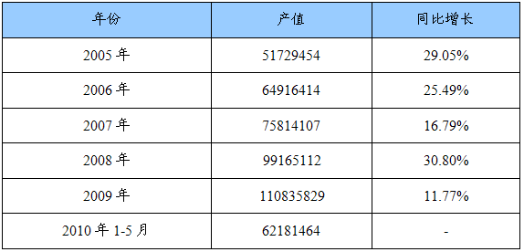 2005-2010年5月下游 行业 发电机 行业 产值增长情况统计表