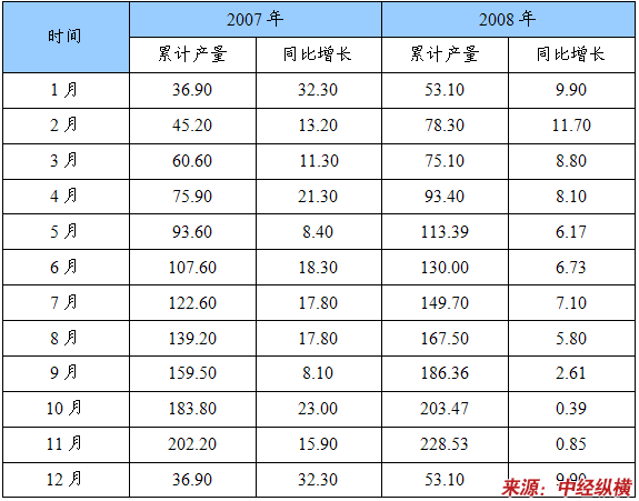 2008年1-12月我国化学原料药累计产量及同比增长情况