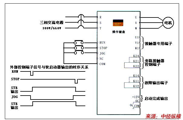 电子晶闸管软启动器与电磁式启动器相比各有优缺点,由于电磁式开关触头压降比晶闸管压降小得多,损耗小,而电子晶闸管软启动器消耗热耗散功率,损耗大。因此,使用电子晶闸管软启动器时,最好加装旁路接触器。软停机时将接触器打开,软启动器投入,晶闸管全导通,实现软停机。