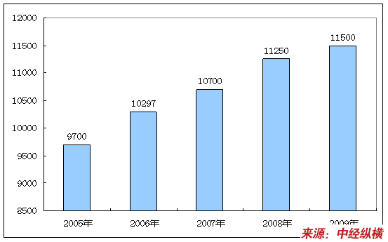 2005-2009年我国小麦产量增长情况