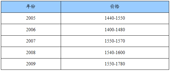 2005-2009年小麦价格表