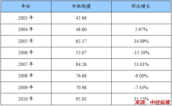2003-2010年中国高速公路机电系统细分市场规模统计