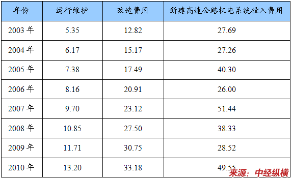 数据包括:当年投入的通信、收费、监控设备;系统集成及软件服务;不包括后期维护费用。