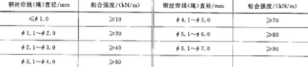 钢丝帘线(绳)与橡胶的粘合强度应符合表2的规定