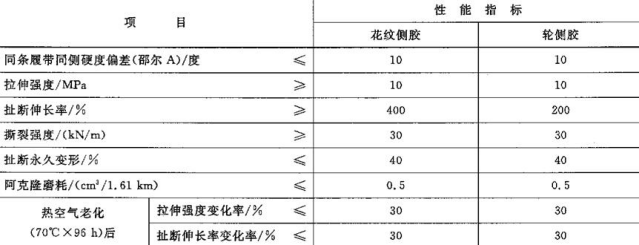 橡胶履带用胶料物理机械性能指标应符合表1规定